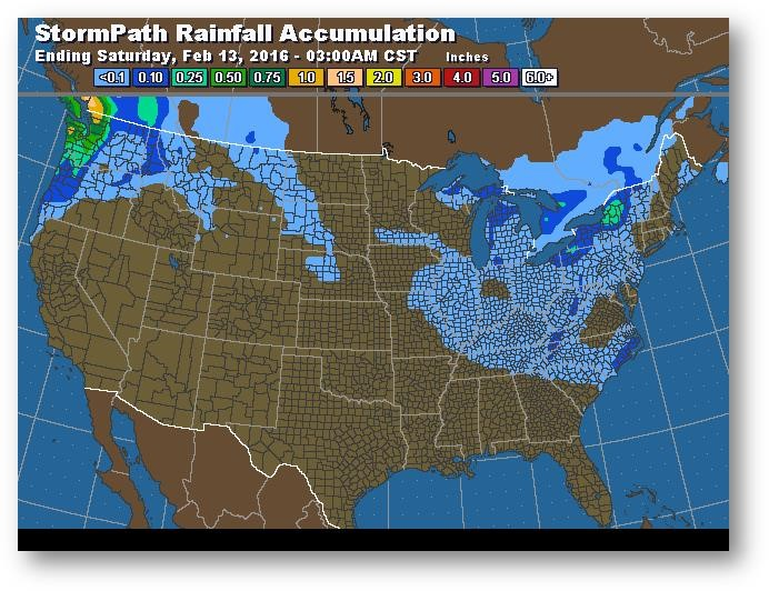 Trajectoire de tempête – Accumulation de précipitations (pouces)