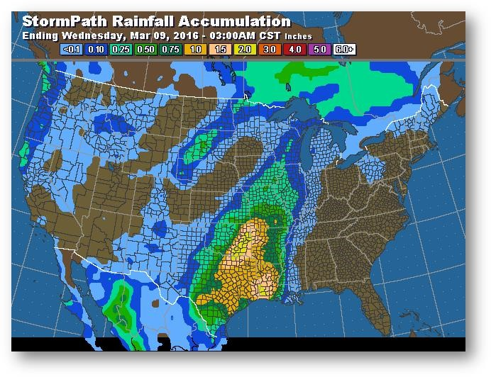 Trajectoire de tempête – Accumulation de précipitations (pouces)