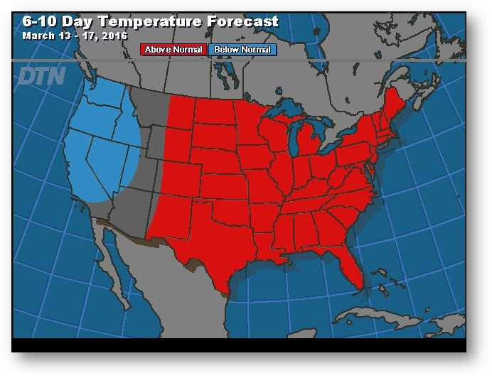 Prévisions de températures pour les 6 à 10 prochains jours