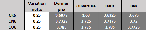 Évolution du prix calculé en fonction du rapport 201 du CME : baisse prévue de