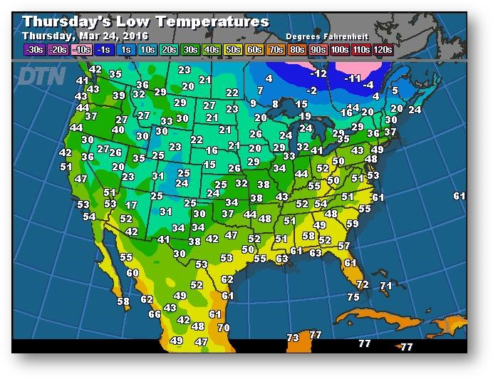 Prévisions des températures les plus basses (degrés Farenheit)