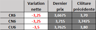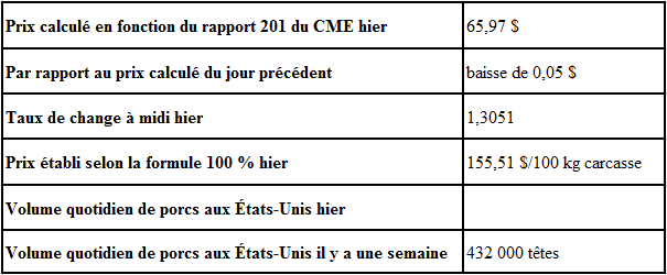Évolution du prix calculé en fonction du rapport 201 du CME : baisse prévue de