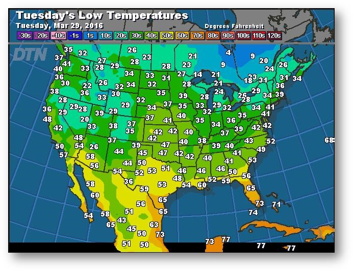 - Le gel dans les grandes plaines du sud des États-Unis pourrait endommager le blé d'hiver.