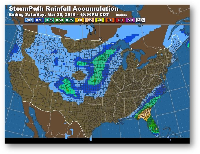 Trajectoire de tempête – Accumulation de précipitations (pouces)