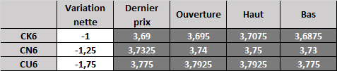 Évolution du prix calculé en fonction du rapport 201 du CME : baisse prévue de