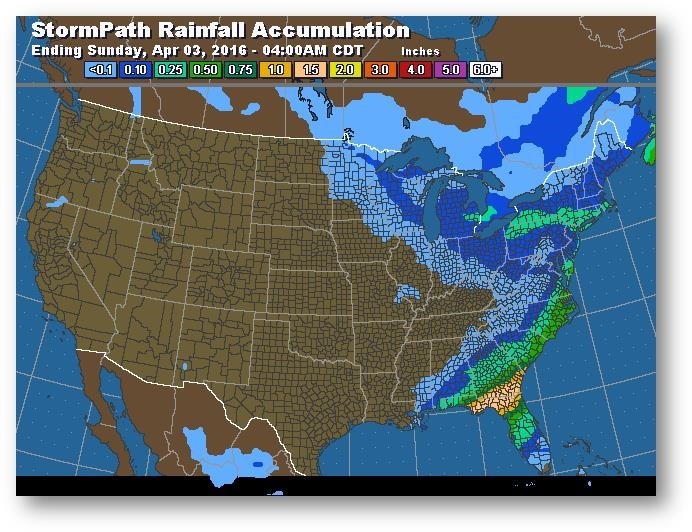 Trajectoire de tempête – Accumulation de précipitations (pouces)