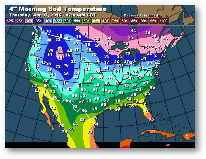 Température du sol en matinée à une profondeur de 4 pouces (degrés Farenheit)