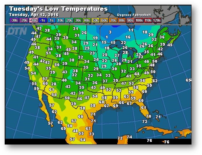 Prévisions des températures les plus basses (degrés Farenheit)