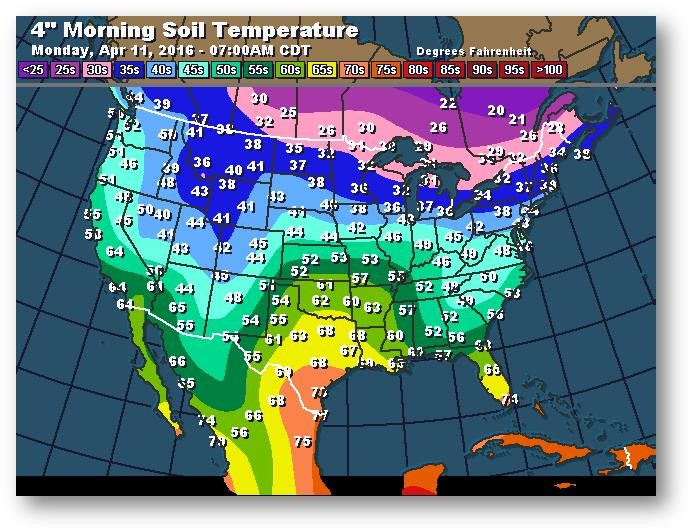Température du sol en matinée à une profondeur de 4 pouces (degrés Farenheit)