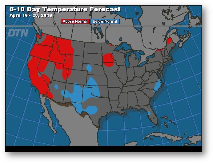 Prévisions de températures pour les 6 à 10 prochains jours