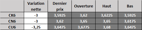 Évolution du prix calculé en fonction du rapport 201 du CME : hausse prévue de