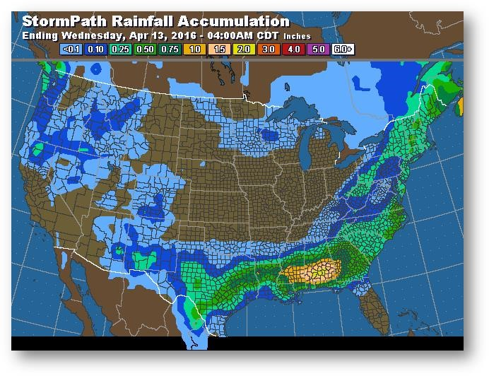 Trajectoire de tempête – Accumulation de précipitations (pouces)