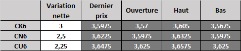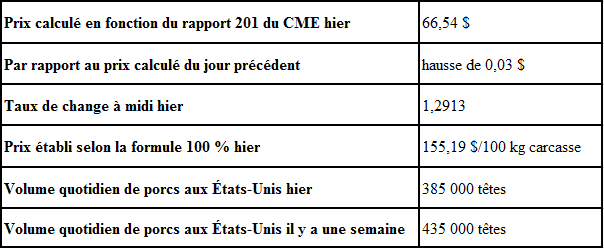 Évolution du prix calculé en fonction du rapport 201 du CME : baisse prévue de