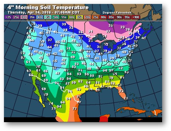Température du sol en matinée à une profondeur de 4 pouces (degrés Farenheit)