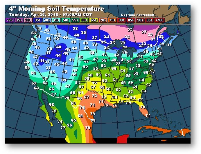 Température du sol en matinée à une profondeur de 4 pouces (degrés Farenheit)