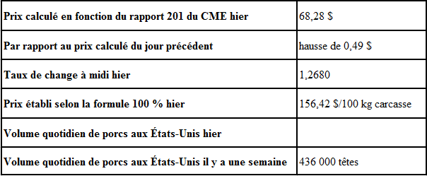 Les prix ont grimpé hier et au cours de la nuit puisque les conditions météo aux États-Unis ont offert du support au marché et poussé les fonds à acheter. On prévoit pour la majeure partie de la Corn Belt des températures sous la normale et des précipitations au-dessus de la normale au cours de la prochaine semaine, ce qui devrait retarder quelque peu l'ensemencement. Toutefois, jusqu'à maintenant, les agriculteurs ont bien travaillé et complété 30% des semis en date du 24 avril, comparativement à 13% la semaine précédente et à une moyenne de 16% pour les cinq dernières années. Hier, les inspections à l'exportation ont révélé un résultat de 44,8 millions de boisseaux, ce qui correspond aux attentes du marché et est supérieur à la moyenne hebdomadaire nécessaire pour atteindre la prévision du USDA à 1650 millions de boisseaux. Si les exportations élevées se poursuivent, le USDA pourrait revoir son évaluation à la hausse dans les prochains rapports sur l'état de l'offre et de la demande, surtout si les pertes de production au Brésil (safrinha) sont considérables. On doit s'attendre à une certaine volatilité prochainement.