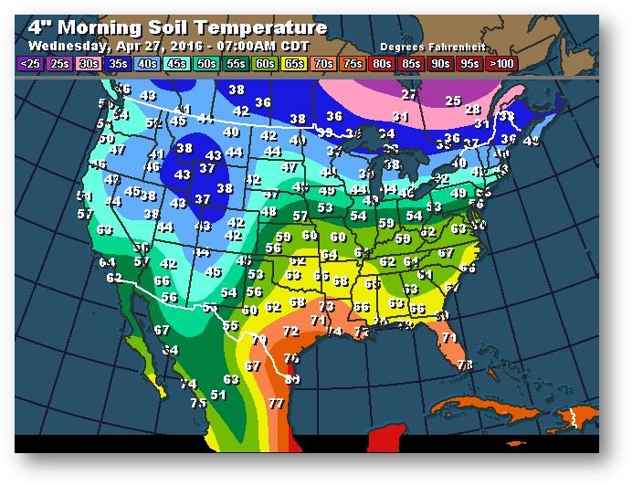 Température du sol en matinée à une profondeur de 4 pouces (degrés Farenheit)