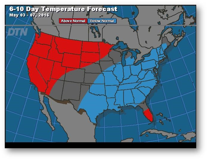 Prévisions de températures pour les 6 à 10 prochains jours