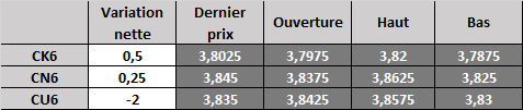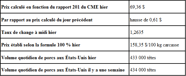 Évolution du prix calculé en fonction du rapport 201 du CME : hausse prévue de