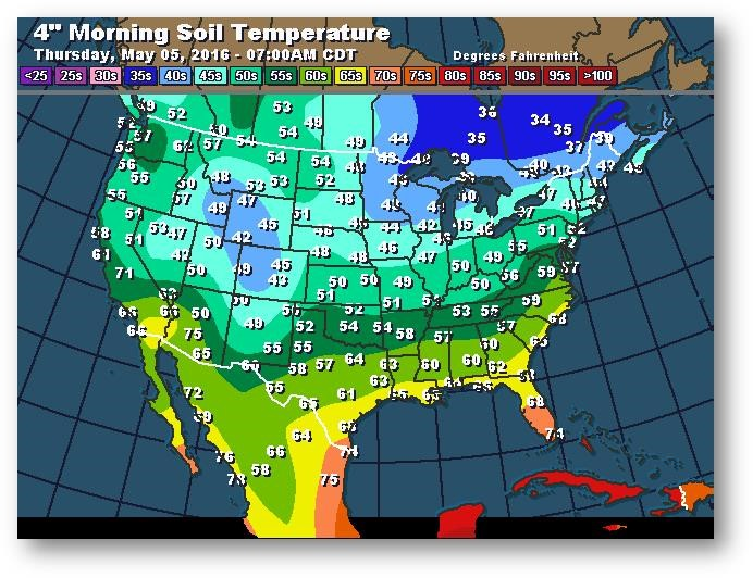 Température du sol en matinée à une profondeur de 4 pouces (degrés Farenheit)