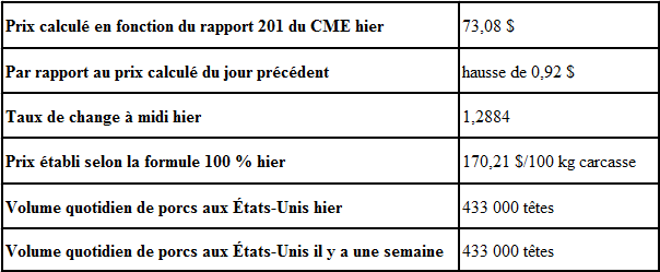 Évolution du prix calculé en fonction du rapport 201 du CME : hausse prévue de