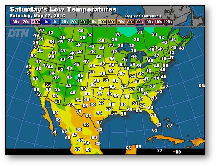Prévisions des températures les plus basses (degrés Farenheit)