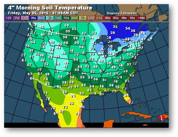 Température du sol en matinée à une profondeur de 4 pouces (degrés Farenheit)