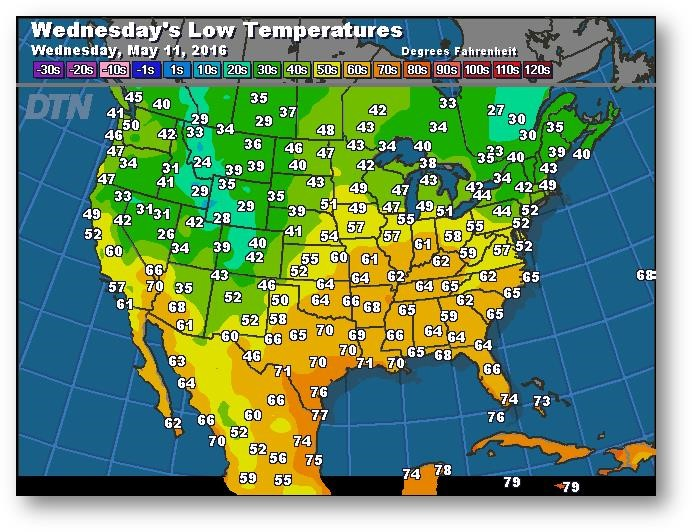 Prévisions des températures les plus basses (degrés Farenheit)