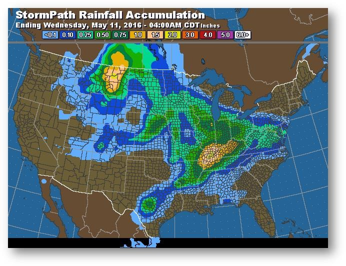 Les prix ont baissé avant la publication du rapport d'aujourd'hui en raison de ventes agressives et de la liquidation de positions longues des fonds; hier le contrat à terme de juillet (CN6) a clôturé en baisse de 0,085$. Les fonds auraient vendu 11 000 contrats hier. À la suite de la clôture, le rapport d'évolution de l'ensemencement a indiqué que les semis étaient complétés à 64% comparativement à 45% la semaine dernière et à une moyenne de 50% pour les cinq dernières années. Cette semaine, les conditions météo ne sont pas aussi favorables; on attend des précipitations dans la majeure partie de la Corn Belt. La Conab a publié ses prévisions revues pour la récolte brésilienne ce matin : la production de maïs a été diminuée à 79,96 millions de tonnes (-4,7 millions de tonnes) en raison du temps sec. Toute l'attention est maintenant tournée vers la publication du rapport sur l'état de l'offre et de la demande du USDA aujourd'hui. Le marché s'attend clairement à des stocks de report imposants pour 2016-2017 (évaluation moyenne à 2294 millions de boisseaux). Il faudra voir si la faiblesse des prix tenait déjà compte de cette donnée ou s'il y aura déclenchement de ventes.