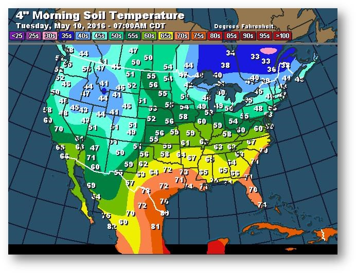 Température du sol en matinée à une profondeur de 4 pouces (degrés Farenheit)