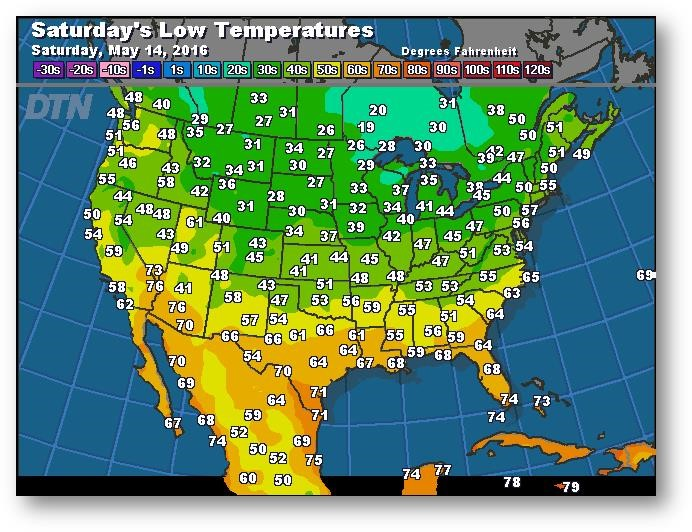 Prévisions des températures les plus basses (degrés Farenheit)