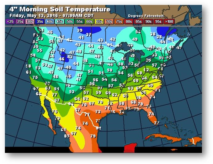 Température du sol en matinée à une profondeur de 4 pouces (degrés Farenheit)