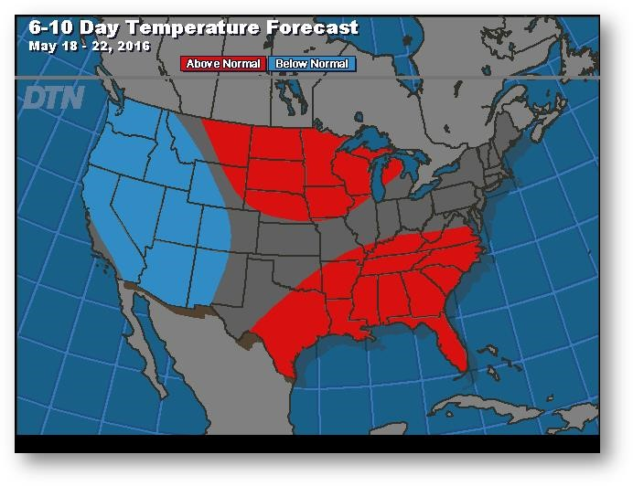 Prévisions de températures pour les 6 à 10 prochains jours
