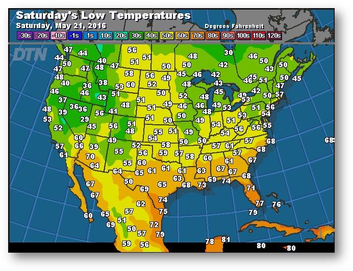 Prévisions des températures les plus basses (degrés Farenheit)