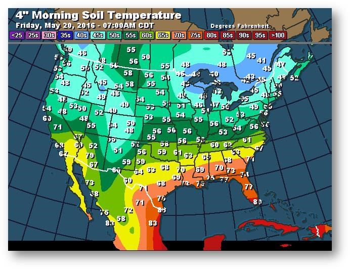 Température du sol en matinée à une profondeur de 4 pouces (degrés Farenheit)
