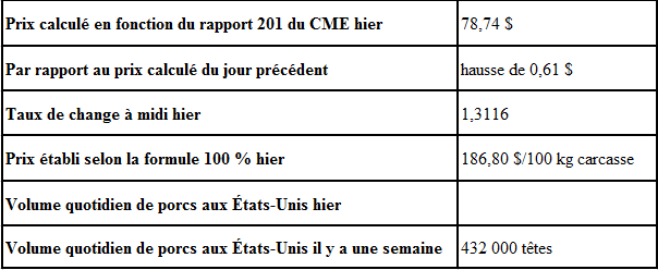 Évolution du prix calculé en fonction du rapport 201 du CME : baisse prévue de