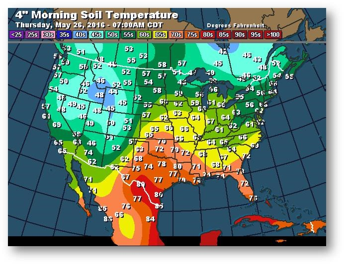 Température du sol en matinée à une profondeur de 4 pouces (degrés Farenheit)