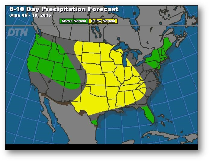 Les prix ont continué de tomber au cours de la nuit à la suite d'une journée de renversement à la baisse. Les conditions de survente technique, la faiblesse dans le blé et les conditions météo favorables dans la Corn Belt pour les 10-14 prochains jours ont tous contribué à la pression à la baisse sur le maïs. Les inspections à l'exportation ont été faibles hier à 786 407 tonnes, résultat inférieur aux attentes du marché. Les inspections correspondent à 65% de la prévision du USDA comparativement à une moyenne de 72% pour les cinq dernières années. L'ensemencement a progressé de 8% et est maintenant complété à 94%, soit le même résultat que l'année dernière et tout juste devant la moyenne de cinq ans à 92%. Le NASS a également publié sa première évaluation de l'état des cultures de la saison, et la maïs est à 72% dans la catégorie bon/excellent (74% il y a un an). Les conditions météo seront le principal moteur des prix dans les prochaines semaines. Le marché maintiendra une certaine prime de risque liée à la météo, mais la progression des semis, la météo favorable à court terme et des stocks de report de plus de deux milliards de boisseaux laissent croire que la hausse récente est suffisante.