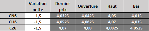 Évolution du prix calculé en fonction du rapport 201 du CME : baisse prévue de