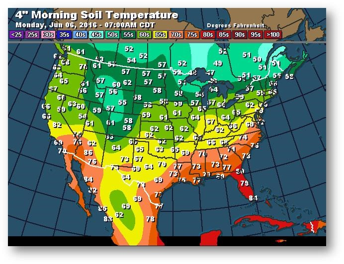Température du sol en matinée à une profondeur de 4 pouces (degrés Farenheit)