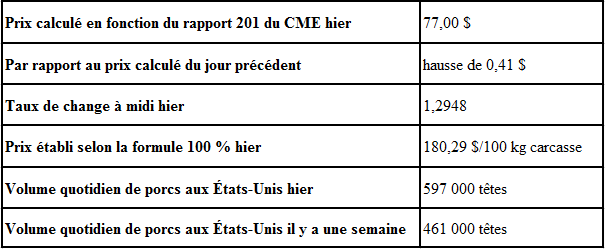 Évolution du prix calculé en fonction du rapport 201 du CME : hausse prévue de