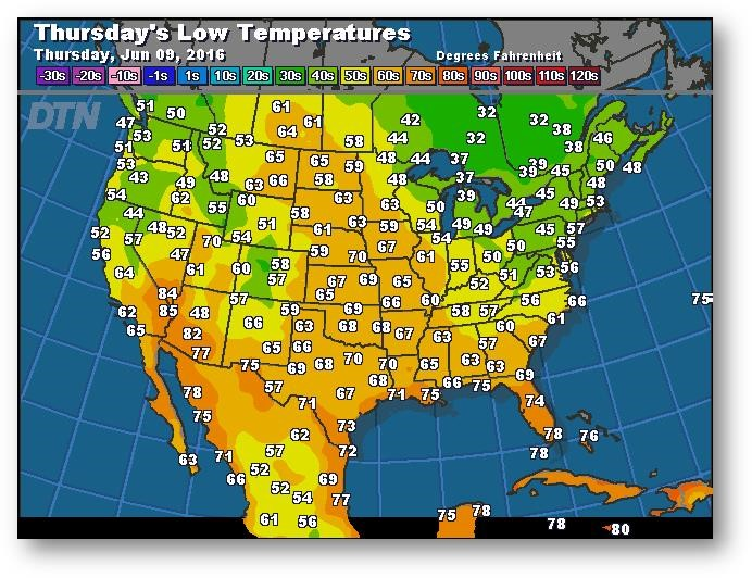 Prévisions des températures les plus basses (degrés Farenheit)