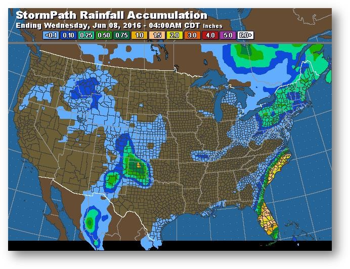 Trajectoire de tempête – Accumulation de précipitations (pouces)