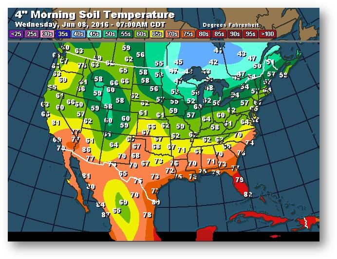 Température du sol en matinée à une profondeur de 4 pouces (degrés Farenheit)