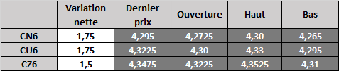 Évolution du prix calculé en fonction du rapport 201 du CME : baisse prévue de