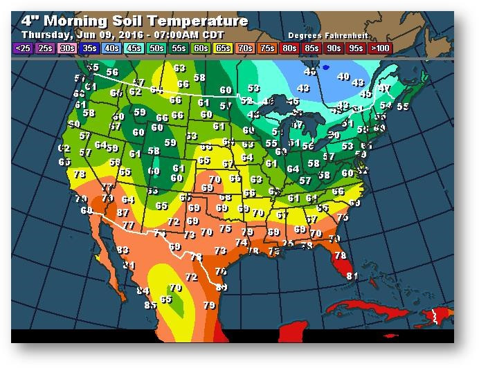 Température du sol en matinée à une profondeur de 4 pouces (degrés Farenheit)