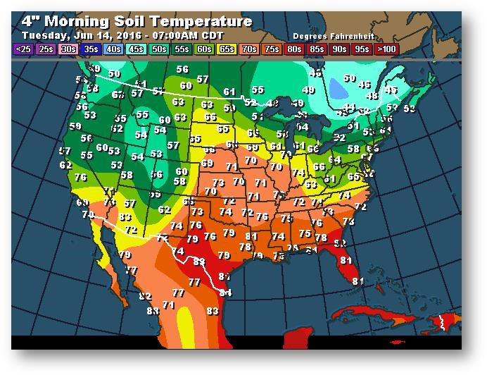 Température du sol en matinée à une profondeur de 4 pouces (degrés Farenheit)