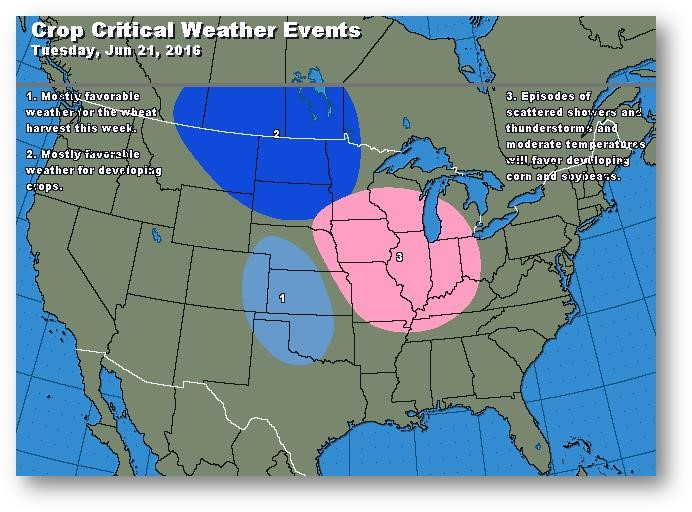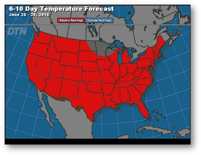 Important recul hier, le maïs a clôturé en baisse de 0,13-0,16$. Les exportations étaient de 48,6 millions de boisseaux, en plein dans la cible hebdomadaire de 46-48 nécessaire pour atteindre la prévision du USDA de 1825 millions de boisseaux. Les valeurs CIF demeurent bien sous la livraison malgré le bond récent. L'évaluation de l'état des cultures a été une surprise puisqu'il n'y a eu aucun changement. Les États de l'est de la Corn Belt ont reculé un peu, mais en général on prévoit un rendement supérieur à la moyenne. Les températures supérieures à la moyenne à long terme devraient inciter le marché à éviter d'autres liquidations; les conditons météo sont loin d'être favorables à la pollinisation. La fin du mois, la fin du trimestre, les conditions météo et un des plus gros rapports du USDA dans l'année devraient rendre les choses intéressantes pour les sept prochaines séances.