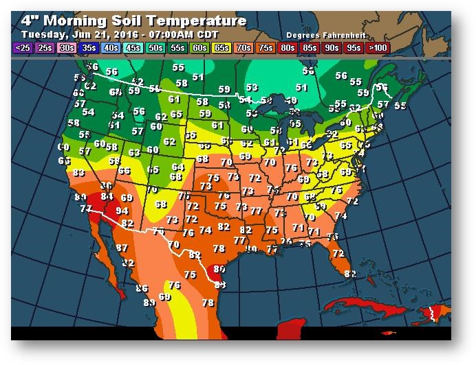 Température du sol en matinée à une profondeur de 4 pouces (degrés Farenheit)
