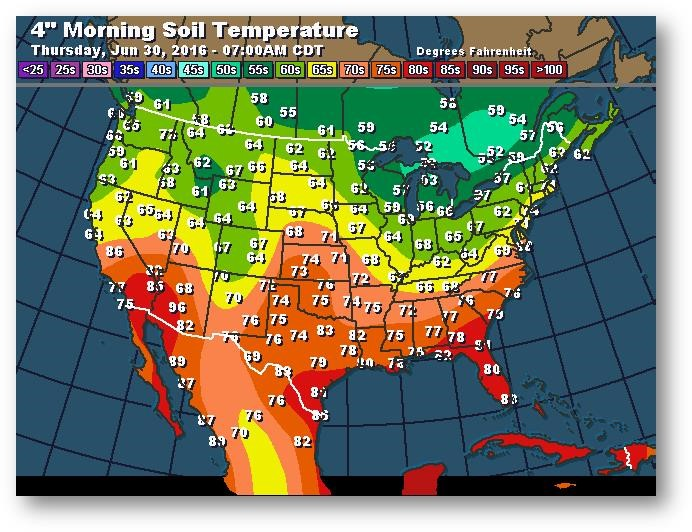 Température du sol en matinée à une profondeur de 4 pouces (degrés Farenheit)